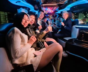 A stylish dinner transfer in sleek Hummer limousines.